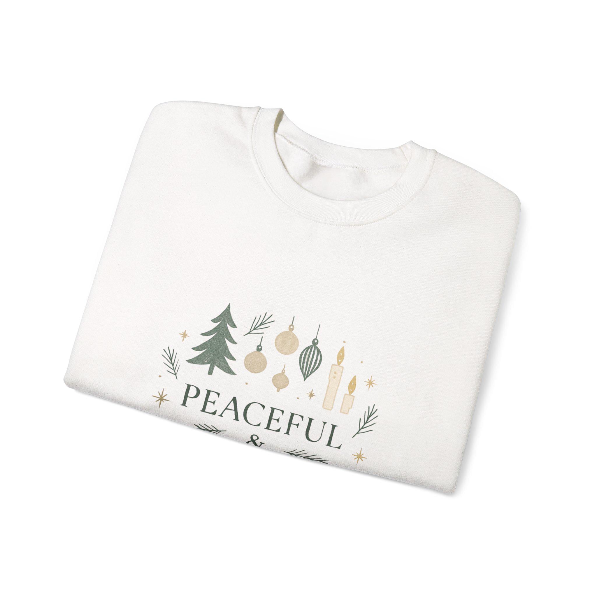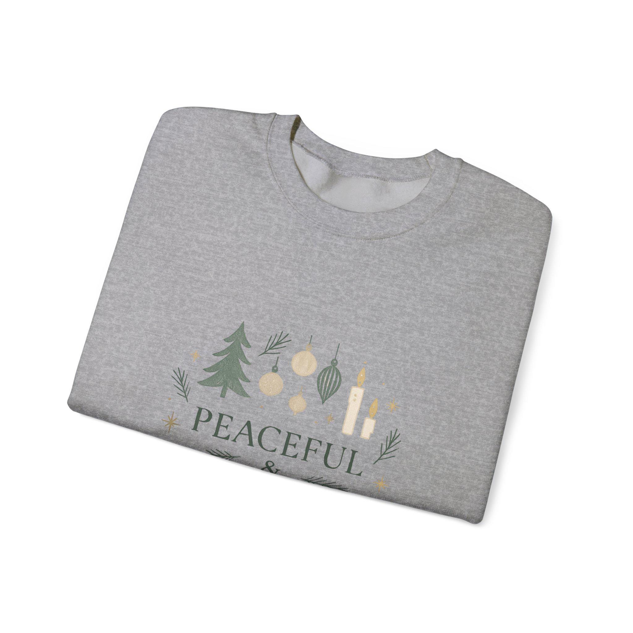 A cozy, calm crewneck sweatshirt designed for slow, gentle holiday moments. Soft off-white fabric carries a subtle seasonal motif—evergreens, delicate ornaments and tiny sprigs—surrounding the words “Peaceful & Present.” Wear it on chilly mornings with a mug of tea, during quiet walks through frosted streets, or curled up by twinkling lights. The fit is roomy but clean, with ribbed cuffs and hem that hold their shape. Thoughtful details like tear-away neck labels and durable double-needle stitching make this sweatshirt feel lived-in from the first wear. It’s for people who lean into calm, who choose warmth and simple beauty over flash. Let it be the layer you reach for when you want to slow down and savor the season.
