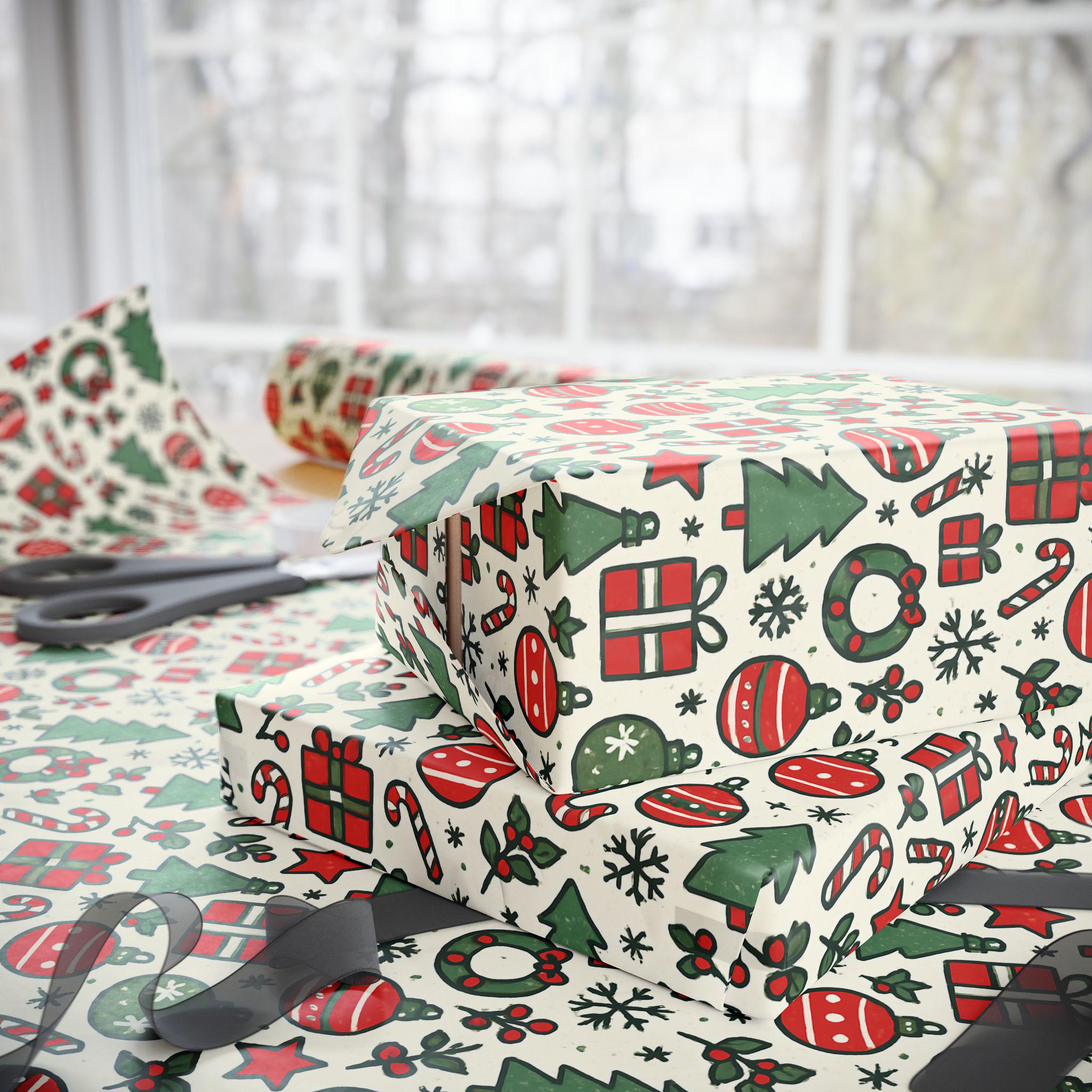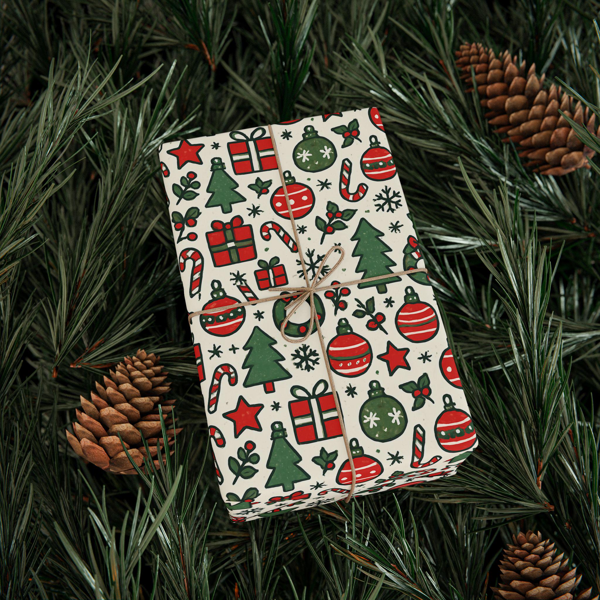 Bring holiday cheer to every package with this Christmas Icons wrapping paper. Cheerful ornaments, stars, and classic yuletide motifs repeat across a clean background, turning ordinary gifts into moments of festive delight. The artful pattern evokes cozy living rooms, twinkling tree lights, and the quiet thrill of lining up presents beneath the tree. Whether tucking in a handmade scarf for a friend who loves seasonal traditions or finishing a housewarming surprise for someone settling into their first winter home, this paper adds that familiar, warm holiday pulse to the ritual of giving. It feels like unwrapping memories—soft, bright, and ready to start a new one.