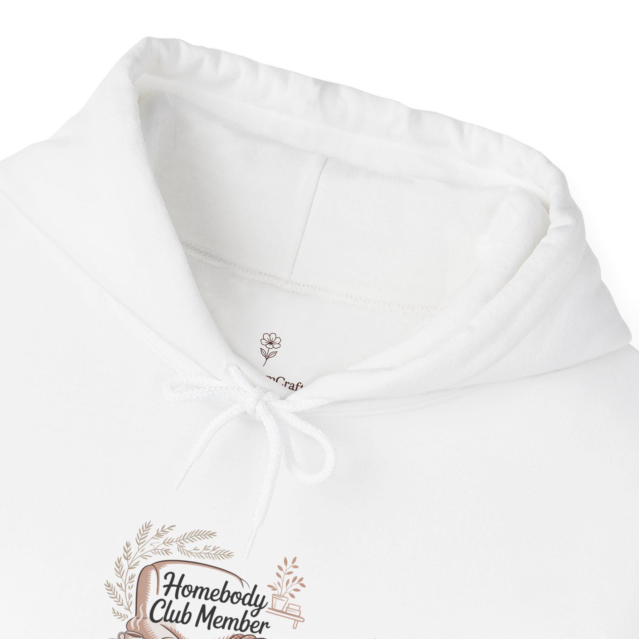 A quietly charming hoodie that captures the Introvert Holiday Club mood with a small, hand-drawn scene of a cozy armchair, steaming mug, and a curled-up cat in muted, warm tones. The artwork reads like a soft membership badge for alone-time celebration—subtle script and gentle linework on a neutral background that blends into a hygge-focused wardrobe. Wear it during slow evenings at home, reading by lamplight, or for low-key winter walks when you want comfort and a little private cheer.