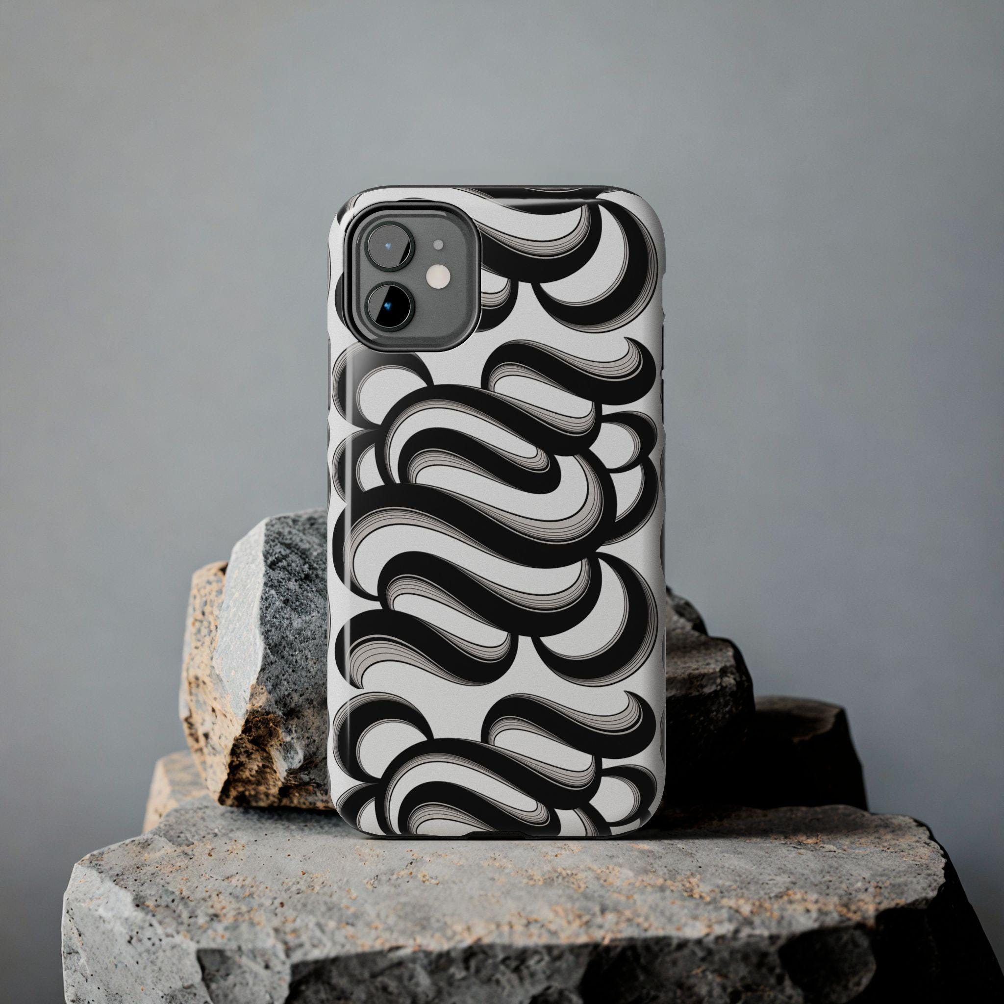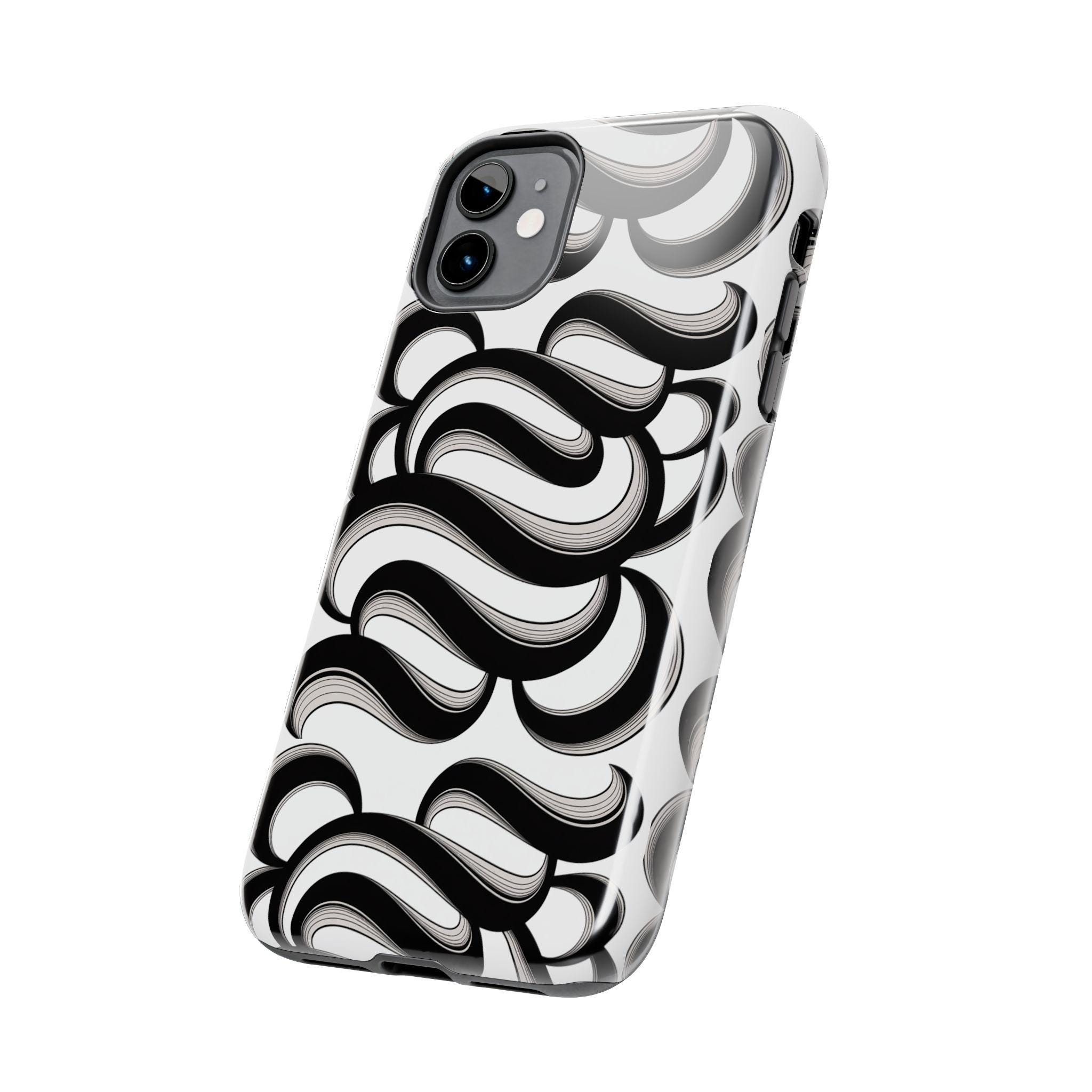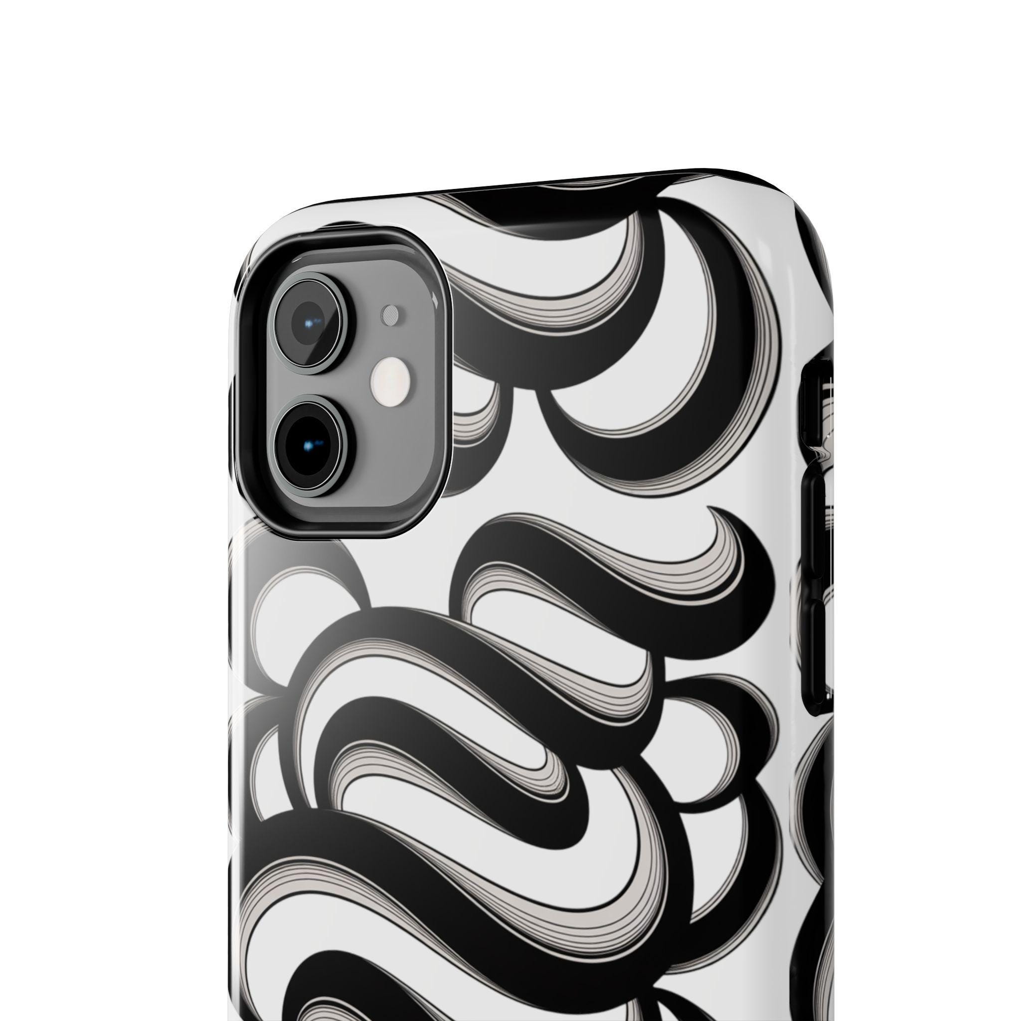 This slim, protective phone case brings bold, graphic energy to everyday carry. The high-contrast black-and-white swirl pattern reads modern and artful, turning your phone into a personal statement. Built with a hard polycarbonate shell and a shock-absorbing TPU liner, the two-piece design disperses impacts while the lay-flat bezel shields the screen from light scratches. A glossy, UV-protected finish keeps the printed design vivid through daily wear, and the case supports wireless charging for hassle-free use. It fits into a lifestyle that values both striking design and dependable protection — for commuters, creatives, and anyone who treats their phone as both tool and accessory.