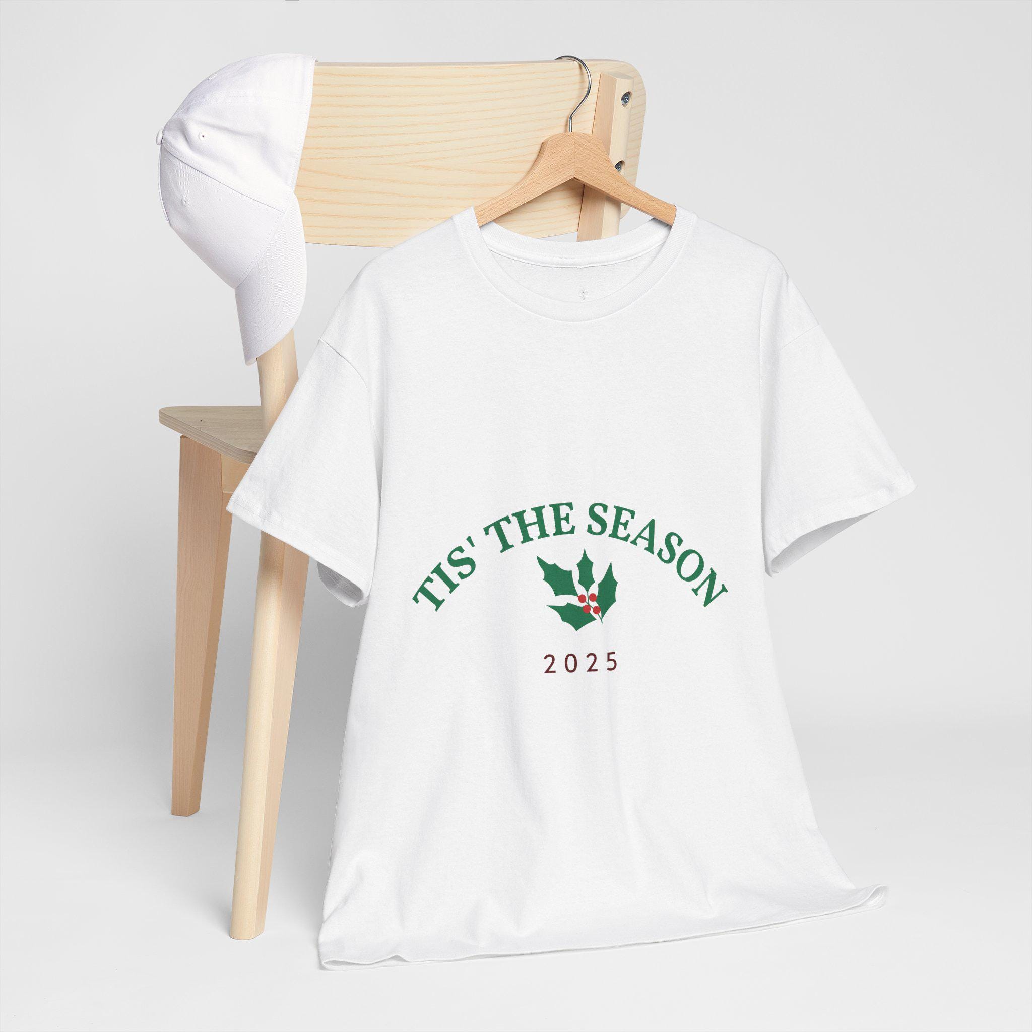 Soft, breathable cotton and a simple, nostalgic print come together in this easygoing tee that celebrates the quiet joy of the season. The arched "’Tis the Season" text with a small holly motif and the year beneath feels timeless — like a memory stitched into an everyday shirt. Wear it to low-key holiday gatherings, while trimming the tree, or on chilly walks with a warm drink. The relaxed classic fit and crew neckline make it effortless to layer under a cardigan or pair with favorite jeans. It’s a subtle way to bring a little seasonal cheer to everyday moments without shouting for attention.
