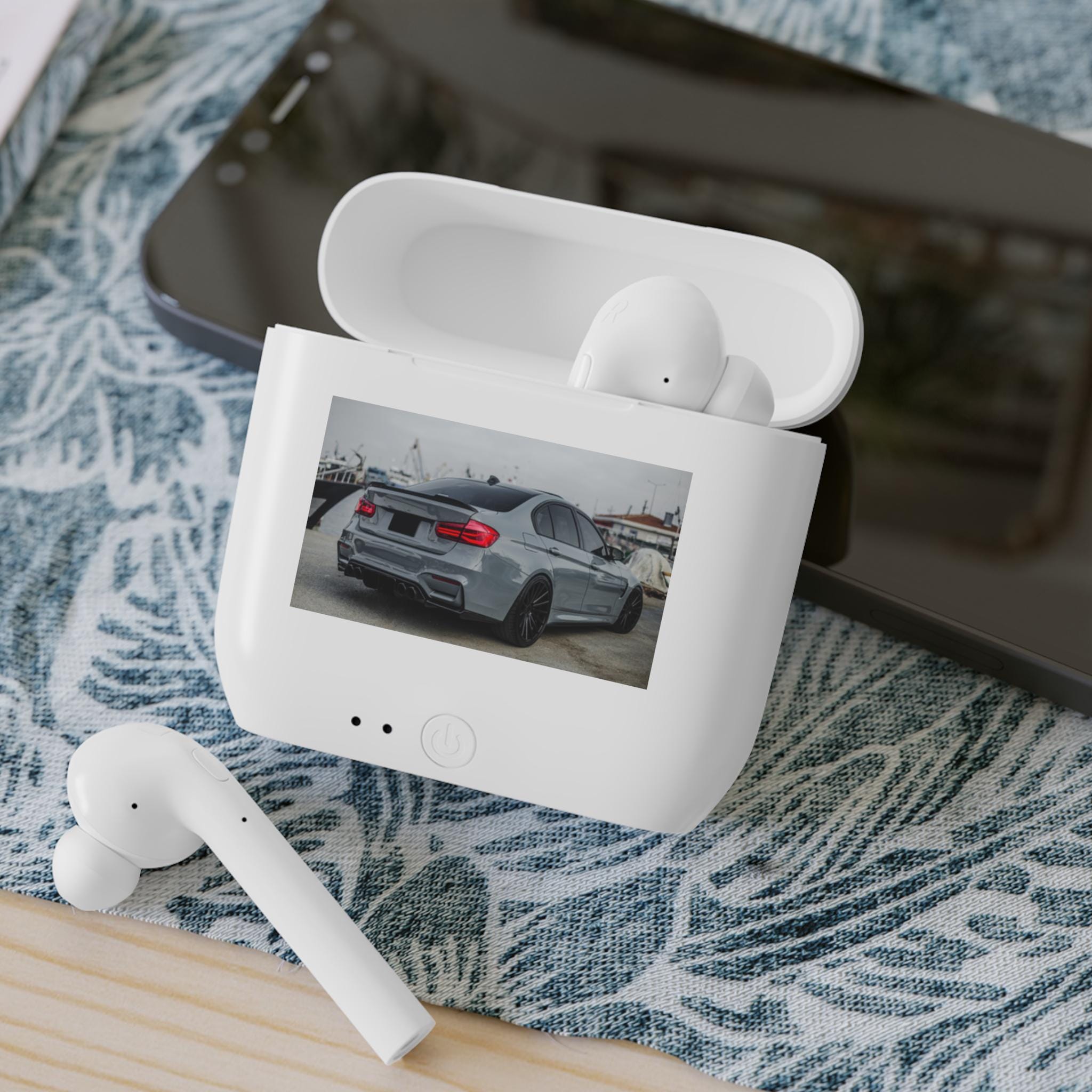 These compact wireless earbuds bring focused sound and everyday convenience to car lovers and gearheads who want music on the move. The smooth, ergonomic earbuds sit snugly while you drive, run errands, or wander the marina. Little details — like quick Bluetooth 5.0 pairing, built-in music controls, and dual microphones — keep calls clear and navigation prompts effortless. The charging case doubles as a powerbank so you don’t worry about a drained battery on long days; three sizes of silicone tips ensure a tailored fit. The minimalist white case with a subtle automotive print makes the set feel personal — like a small, portable extension of the driver’s lifestyle.